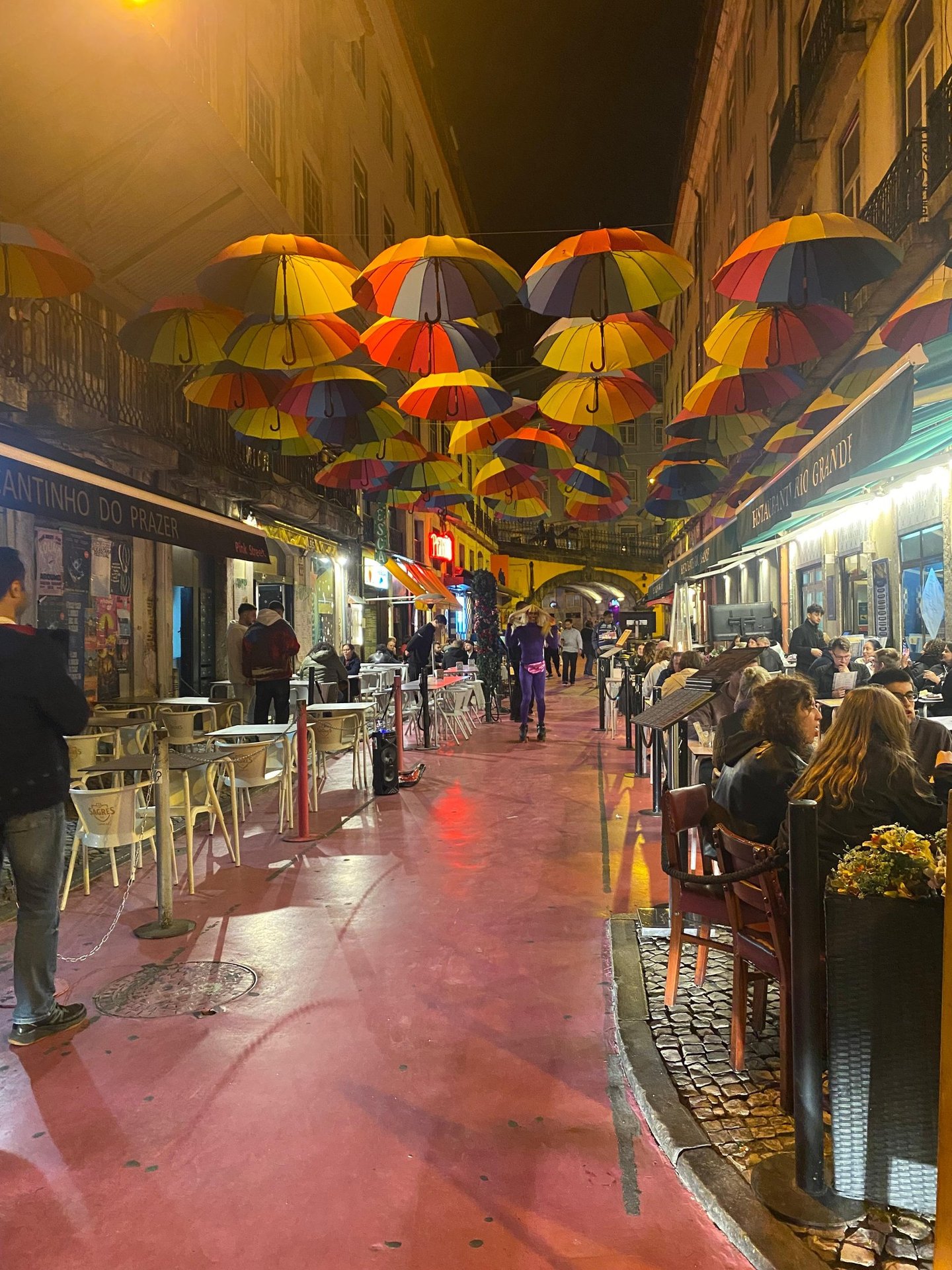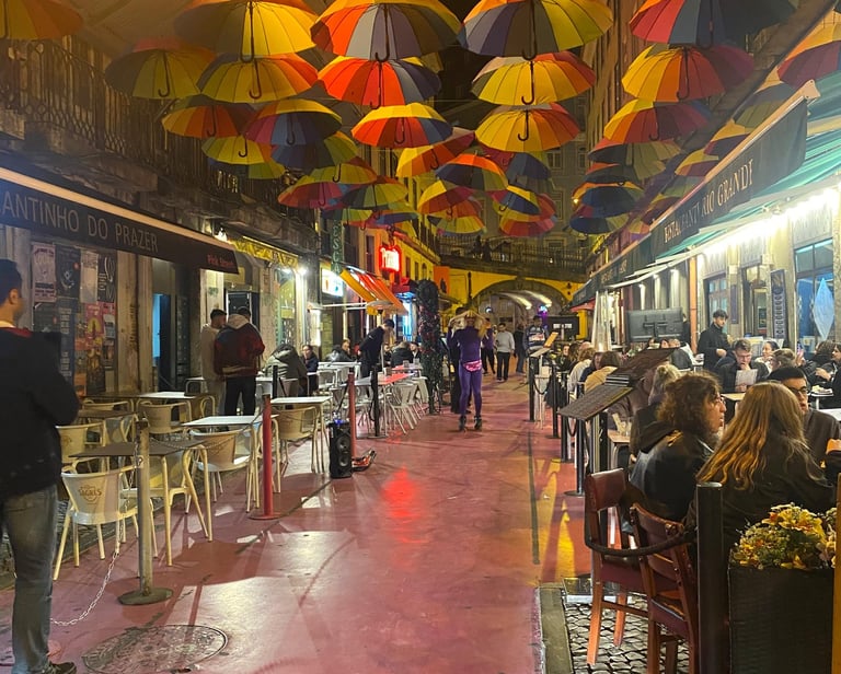 Lisbon's Pink Street, officially known as Rua Nova do Carvalho, is a vibrant and iconic spot in the Cais do Sodré district. Once a notorious red-light area, it underwent a transformation in 2011 when the street was painted pink, turning it into a trendy nightlife hub. Today, Pink Street is lined with a variety of bars and clubs that cater to diverse tastes. Notable venues include Pensão Amor, a former brothel turned eclectic bar with vintage decor, and Music Box, a popular nightclub located under the bridge. The street comes alive at night, offering a lively atmosphere for both locals and tourists. Getting to Pink Street is straightforward. It's just a short walk from the Cais do Sodré metro and train station, making it easily accessible by public transport.